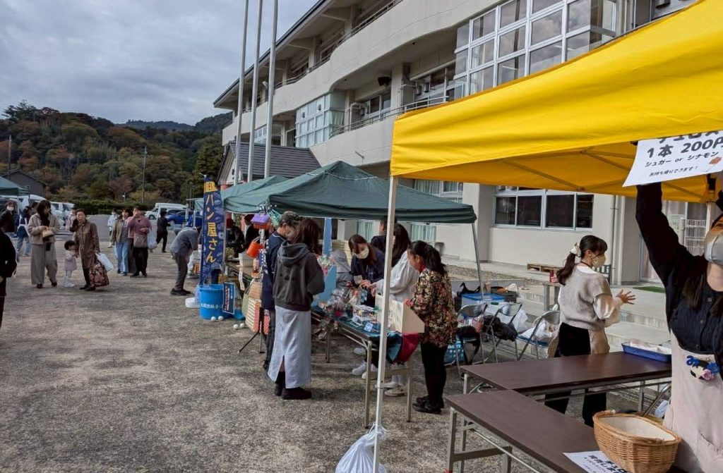 屋外では太巻き寿司や手作りパンなどの飲食の出店が並んでおり、どのお店も大盛況。 体育館のステージでは児童・生徒たちによる合唱や合奏が披露され、会場は拍手で包まれていました。 また、施設内ではサークル活動の展示が行われ、多くの来場者で賑わいました。